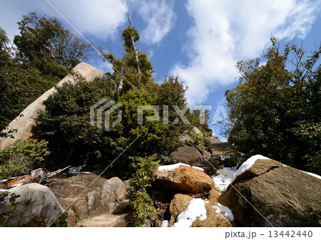 弥山山頂付近の巨石群くぐり岩、宮島、広島県(縦構図)