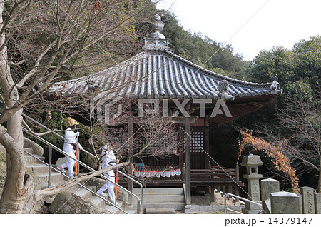四国霊場第71番札所「弥谷寺」水場之洞付近を行くお遍路さん