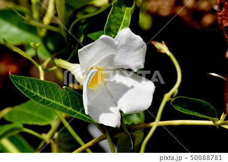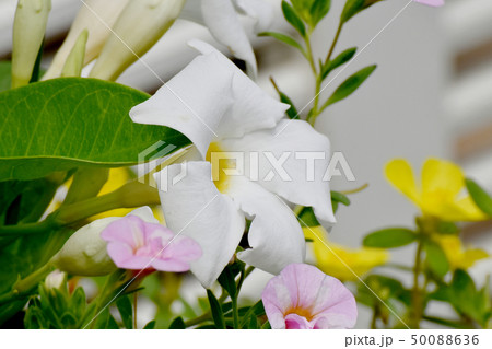 三鷹中原に咲く白いサンパラソル(マンデビラ)