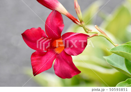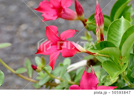 三鷹中原に咲く赤いサンパラソル(マンデビラ)