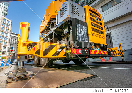 クレーン車や高所作業車はアウトリガーで車体が水平になるように支持しているので車輪は浮いている