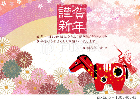 2026年 午年の年賀状イラストデザイン 張り子の馬