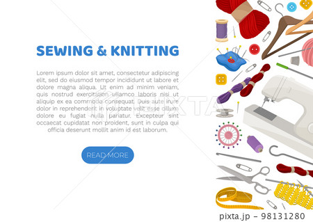 Sewing and Knitting Workshop Banner Design with Equipment Vector Template