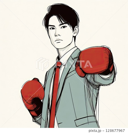 Confident Man in Suit and Boxing Gloves Ready for Battle with Generative AI.