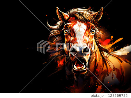赤白の渦巻き模様が施された鬼の正面ポートレート
