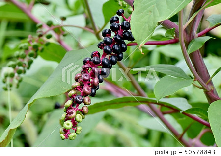 三鷹中原で黒く色づくヨウシュヤマゴボウの実