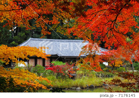 京都府木津川市・秋の浄瑠璃寺・紅葉の中の庭園