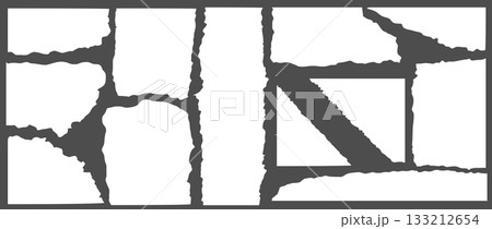 Newspaper cut pieces. Torn paper with typography. Print edition shreds. Jagged edges scraps. Magazines and books fragments. Newsprint cutout shapes. Grunge notepaper. Garish vector set
