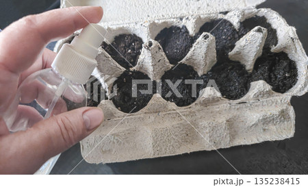 Planting seedlings in biodegradable paper pots made from recycled cardboard.