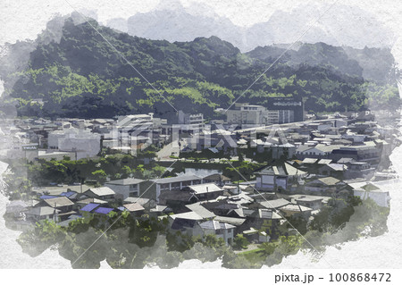水彩画風 彦根城からの眺望 彦根駅前 滋賀県彦根市