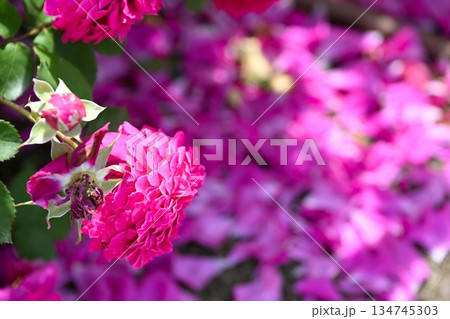 鮮やかなピンクのバラが咲き誇る美しい花