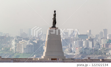 Panoramic aerial view of Cityscape of Lima from Morro Solar hill timelapse hyperlapse, Peru.