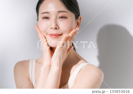 青空と海に囲まれた、透明感あふれる女性ポートレート