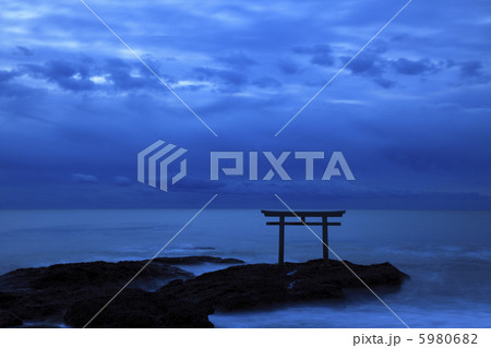 夜明け前の静寂 神磯の鳥居 神秘的ブルーアワー