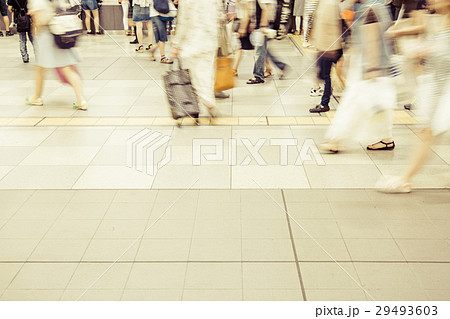 ブラー効果で動きを表現した街中の人々の往来(ビジネスマンと私服姿)