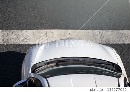 停止線と自動車