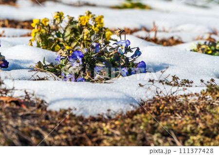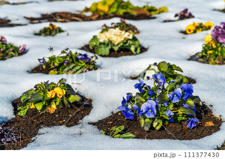 小春日和の太陽を浴びるビオラ