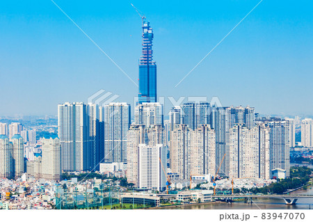 Ho Chi Minh City skyline silhouette in colorful geometric style.
