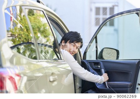 車のドアを開ける男性