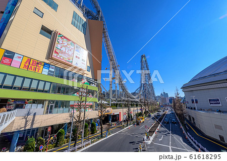 青空の後楽園付近の遊園地