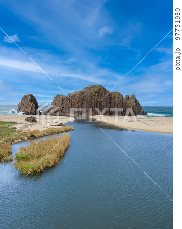 《京都府》晴れの日、山陰海岸ジオパーク立岩の風景