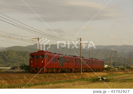夕日を浴び鹿児島本線を北上する特急「いさぶろう・しんぺい」