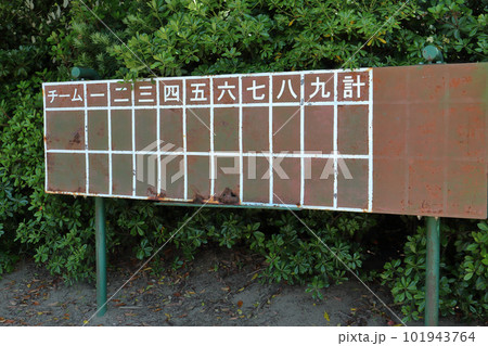 草野球のスコアボード(小松川橋上流野球場/東京都江戸川区平井1丁目)