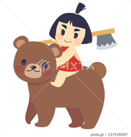 熊に乗るぷくぷく太って健康そうな金太郎の主線なしイラスト