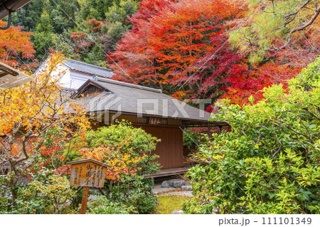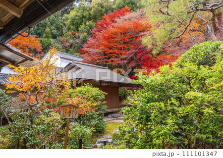 秋の京都 二尊院 色鮮やかな紅葉と御園亭