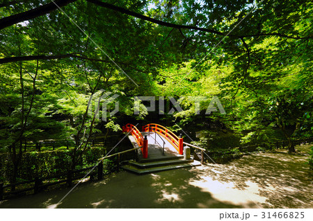 京都 北野天満宮 もみじ苑の鶯橋 新緑