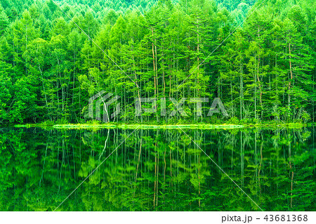 新緑の森を倒影する御射鹿池