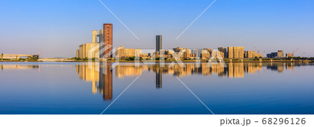 御島水域の朝風景(香椎海岸遊歩道 アイランドシティ) パノラマ 【福岡市東区】
