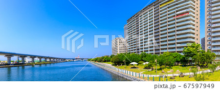 御島水域の朝風景(アイランドシティ外周緑地)パノラマ 【福岡市東区】