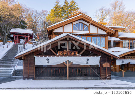御座之湯 白旗源泉 雪が積もる草津温泉街