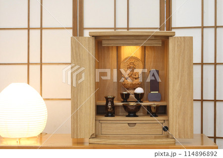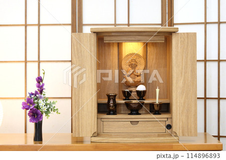 家具調仏壇(都市型仏壇)に4納められた大日如来の仏像 真言宗