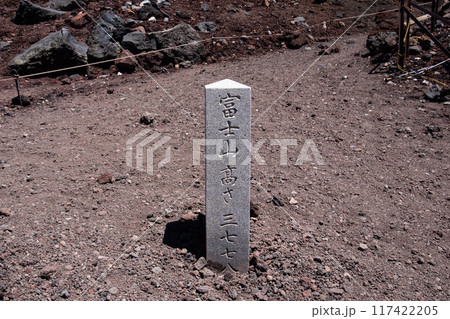 富士山御殿場口頂上の銀明水の鳥居と下山道入口の石柱