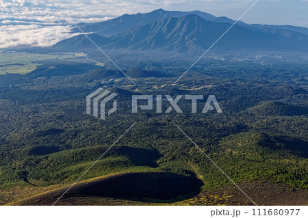 富士山・宝永山から見る朝の双子山と御殿場登山口