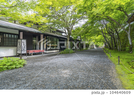 京都市 大原三千院御殿門前参道(大原女の小径)の新緑と茶店