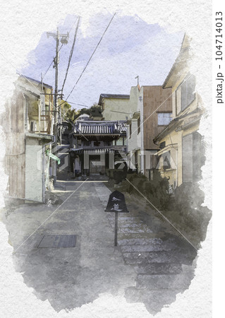 水彩画風 室津 徳乗寺 参道 兵庫県たつの市御津町