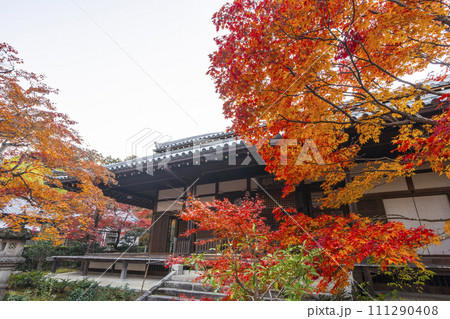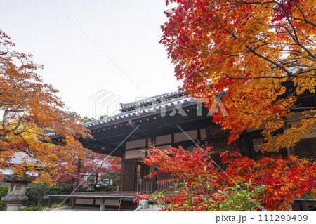 秋の京都 常寂光寺 紅葉に包まれた本堂
