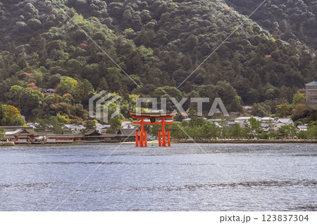 【広島宮島 宮島口JR西日本宮島フェリーからの大鳥居】