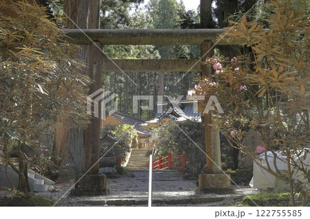 日本屈指のパワースポット御岩神社のシャクナゲで彩られた鳥居