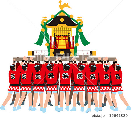 神輿を担ぐ人々 日本の伝統行事のイラスト