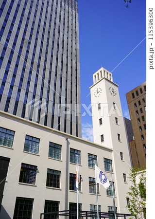 日本の川崎都市景観 2023年秋利用開始予定の川崎市役所新本庁舎。シンボリックな時計塔が魅力的だ