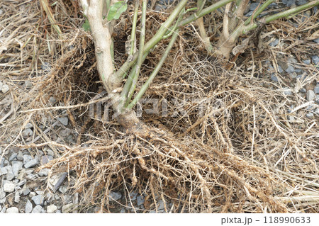ナス栽培終了後の根の様子