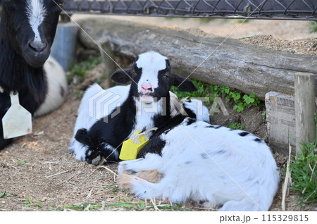 微睡むヤギのあ赤ちゃんたち(ヤクシマヤギ)秩父高原牧場・彩の国ふれあい牧場・埼玉県