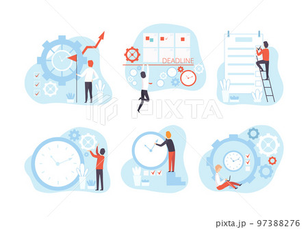 Effective Time Management with Man Organizing Time on Clock and Calendar Vector Set