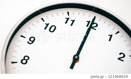 Clean White Clock at 12.05 or 00.05 on Minimalist White Background - Ideal for Time Concepts and Modern Design