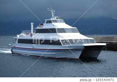 離島を結ぶ高速旅客船の一例(港へ入港中)