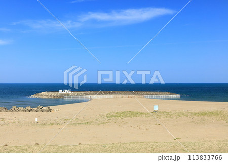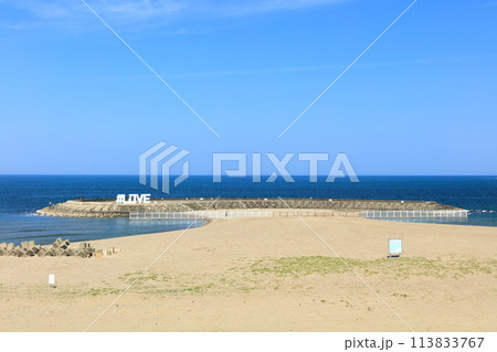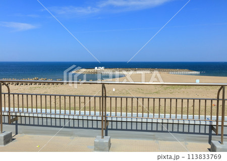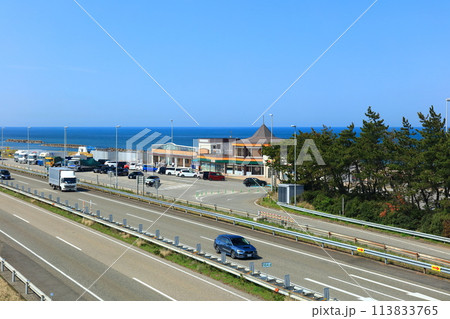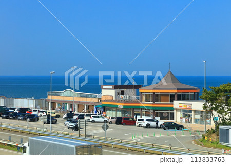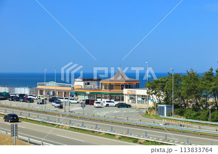【石川県】晴天の徳光パーキングエリアから見た徳光海水浴場